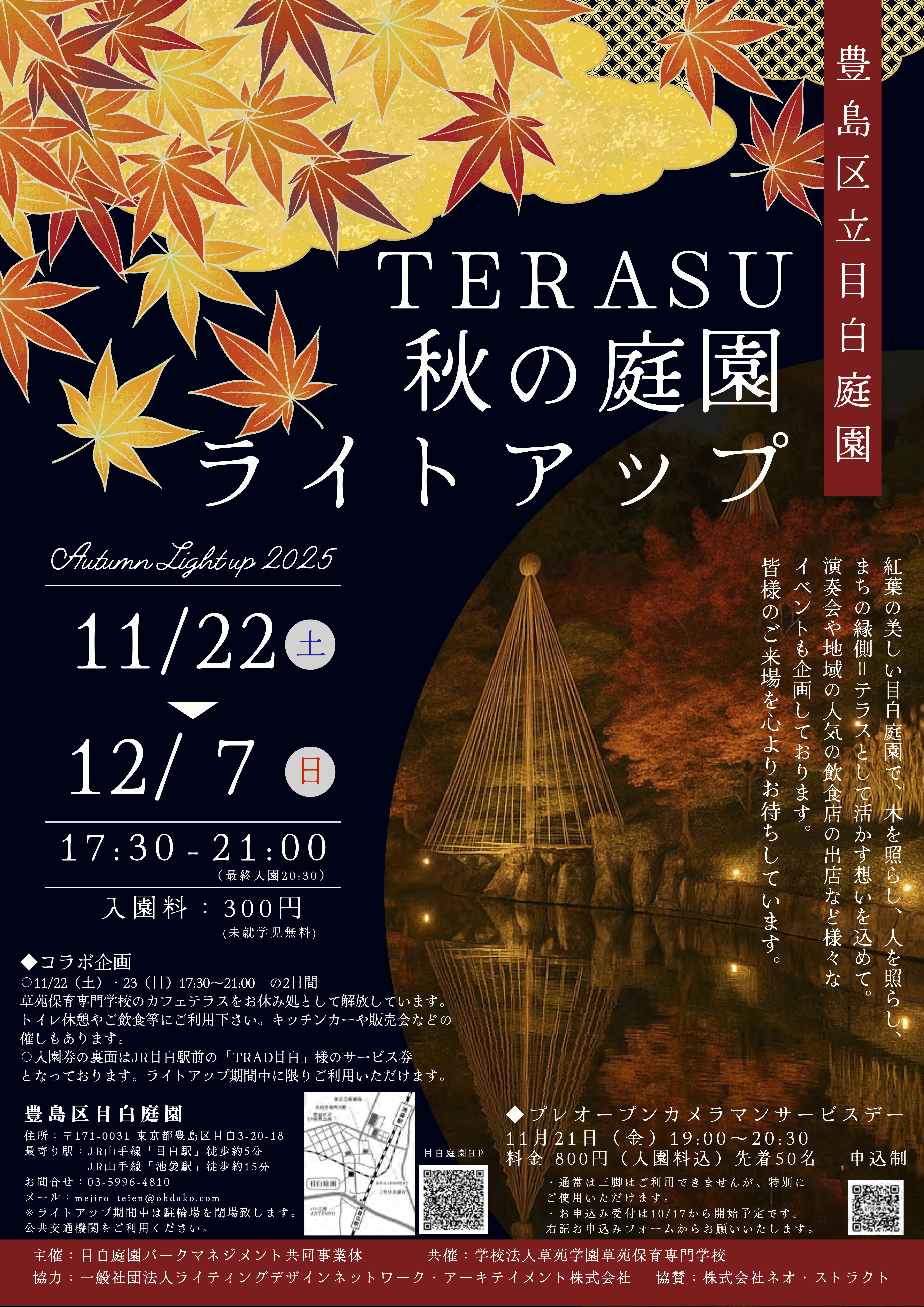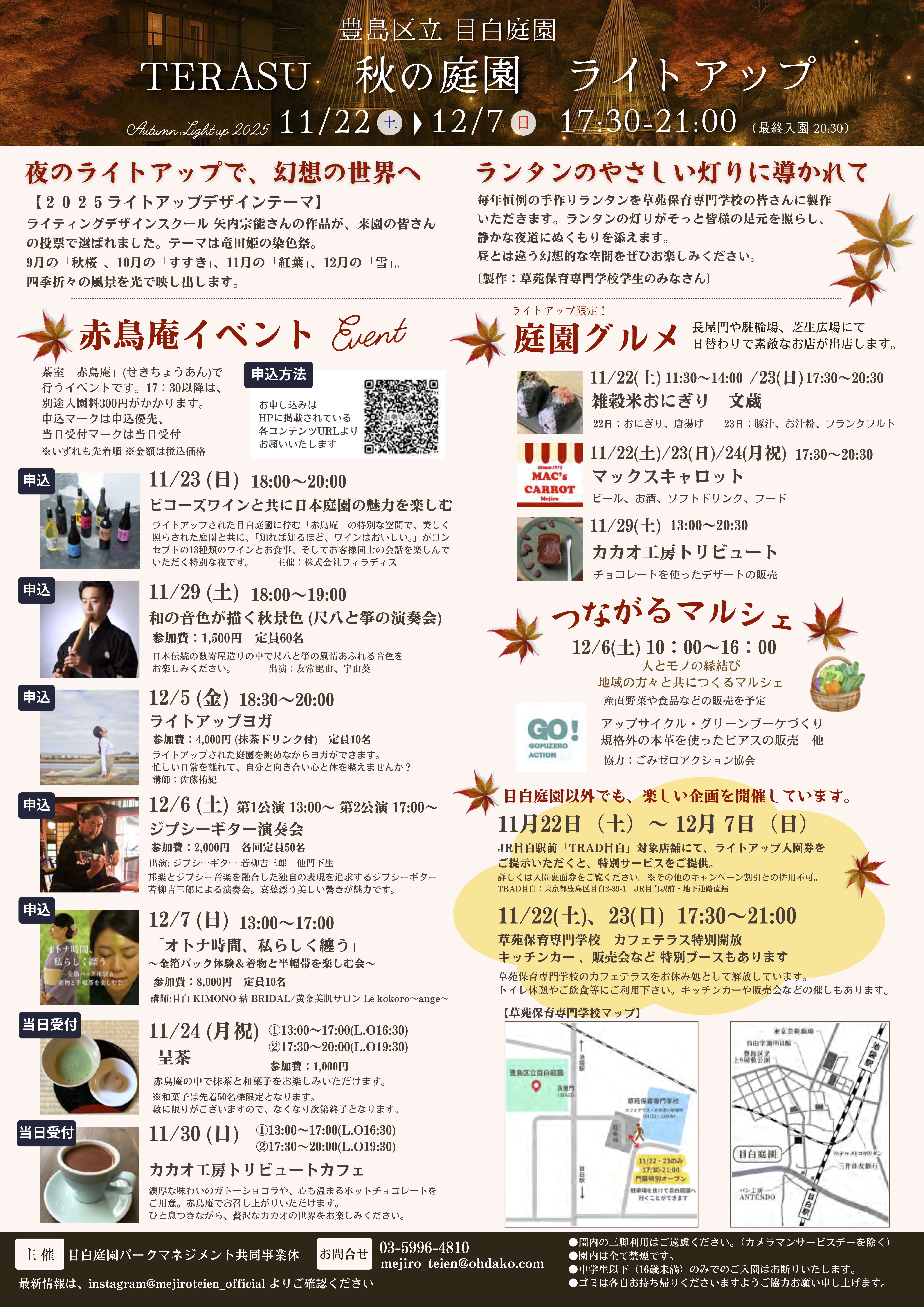 (「TERASU 秋の庭園ライトアップ」については詳しくは下のフライヤーをご確認ください。)