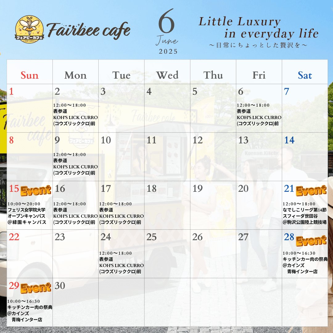 2025年6月の出店カレンダーです。
